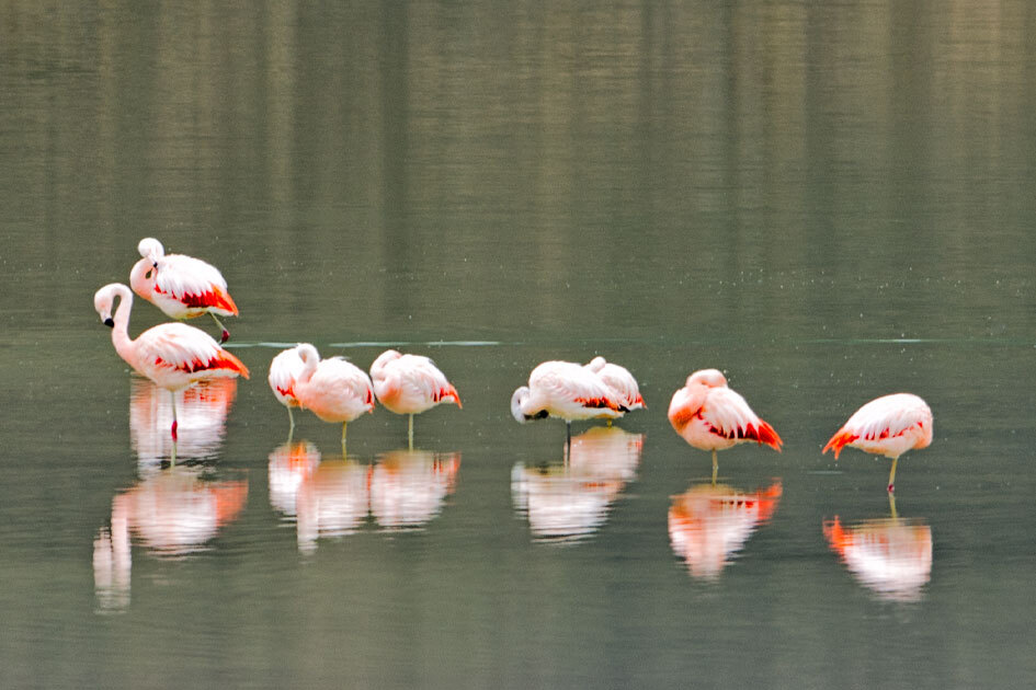 Esta foto tomada por el Dr. Stanley en la Patagonia me trajo a la mente algo curioso que aprendí hace años: que la coloración de los flamencos está relacionada con los carotenoides de las algas, las larvas de la mosca de la salmuera y de los crustáceos que consumen. Hoy en día, las colonias en cautiverio suelen obtener el pigmento como ingrediente en comida granulada, pero al principio los zoológicos servían zanahorias, tomates y/o pimientos rojos para mantener a esas aves con su color rosa.